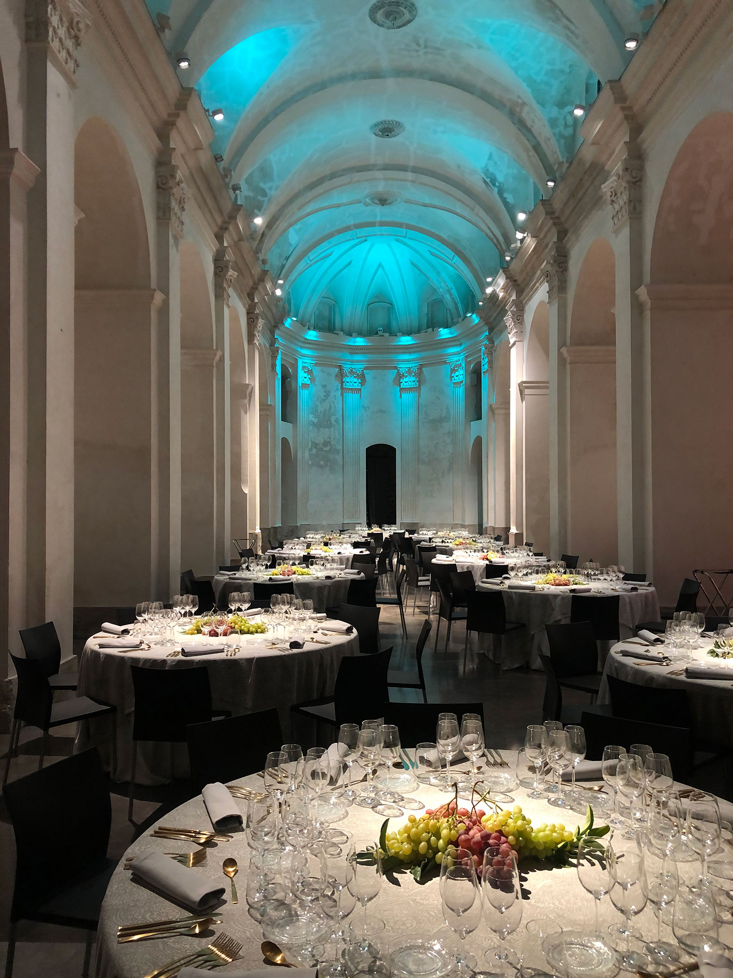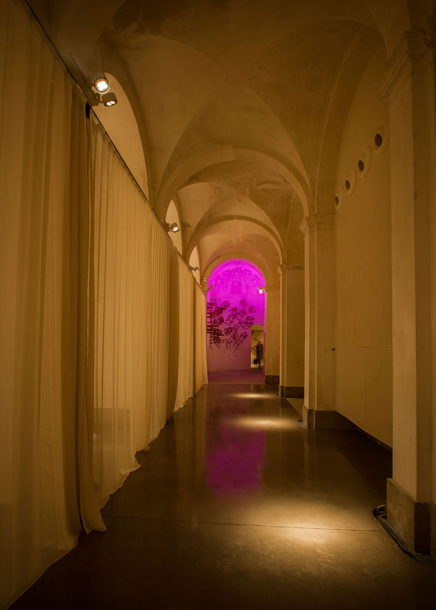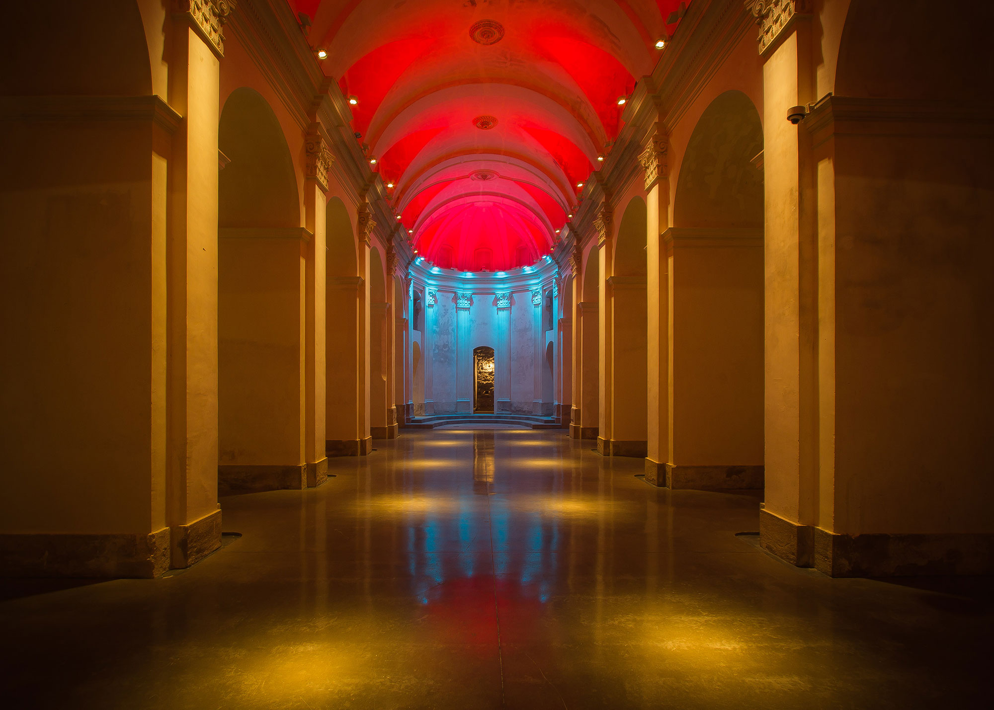 La iglesia es un recinto especial y único, que destaca por un sistema de iluminación de focos regulables en intensidad y cromatismo, que proporciona diferentes escenarios lumínicos de gran majestuosidad.